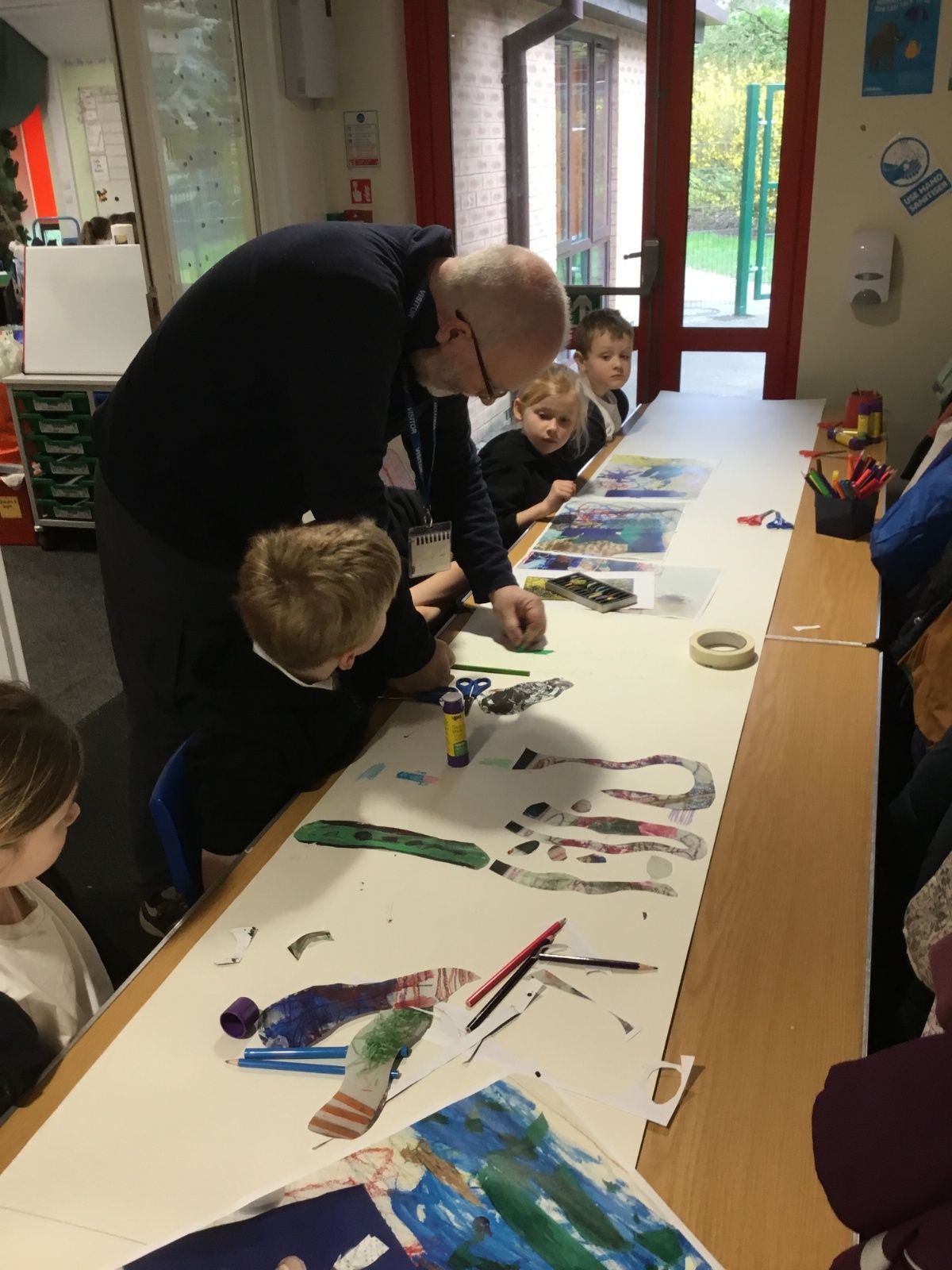 During the session, the children explored different sea plants and underwater life, using a variety of materials and techniques to create a vibrant and imaginative piece of artwork together. They showed great creativity and enthusiasm as they experimented with colour, texture and shape to represent the underwater world.