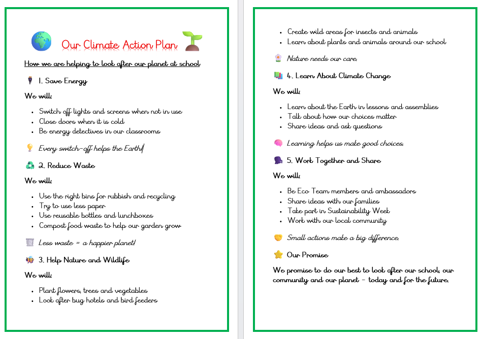 Our Climate Action Plan (shown below) guides this work and helps ensure that sustainability is embedded in school life now and for the future.