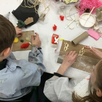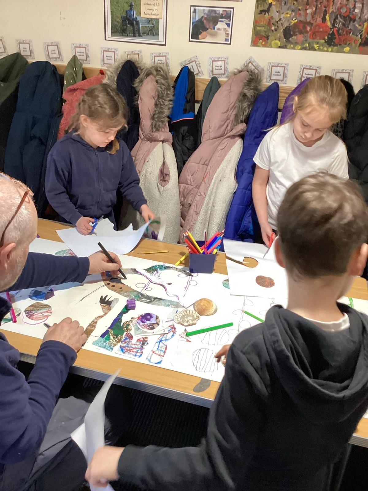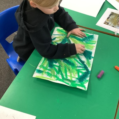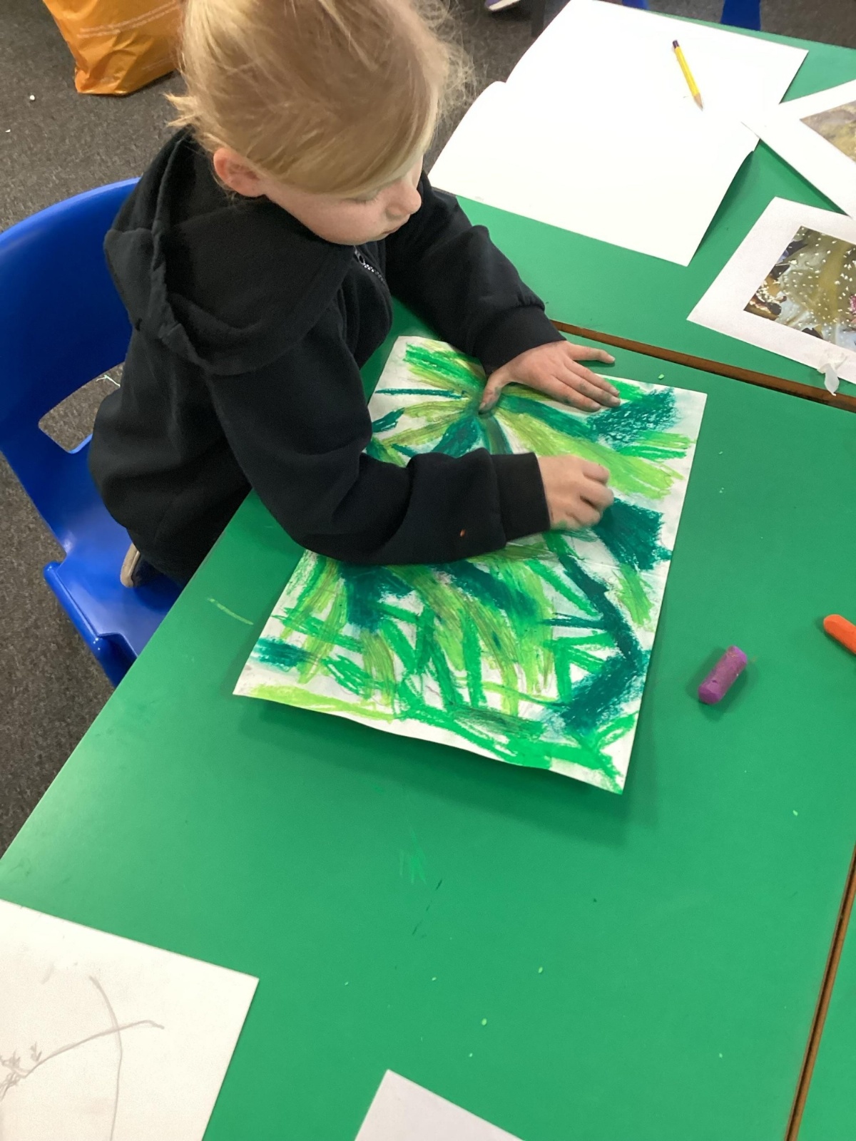 Class 2 recently enjoyed a fantastic visit from our artist in residence, Kane Cunningham, who spent time working with the children on a large-scale mixed media art project. The work was inspired by our current science learning about plants and links nicely with our upcoming geography topic on coasts.