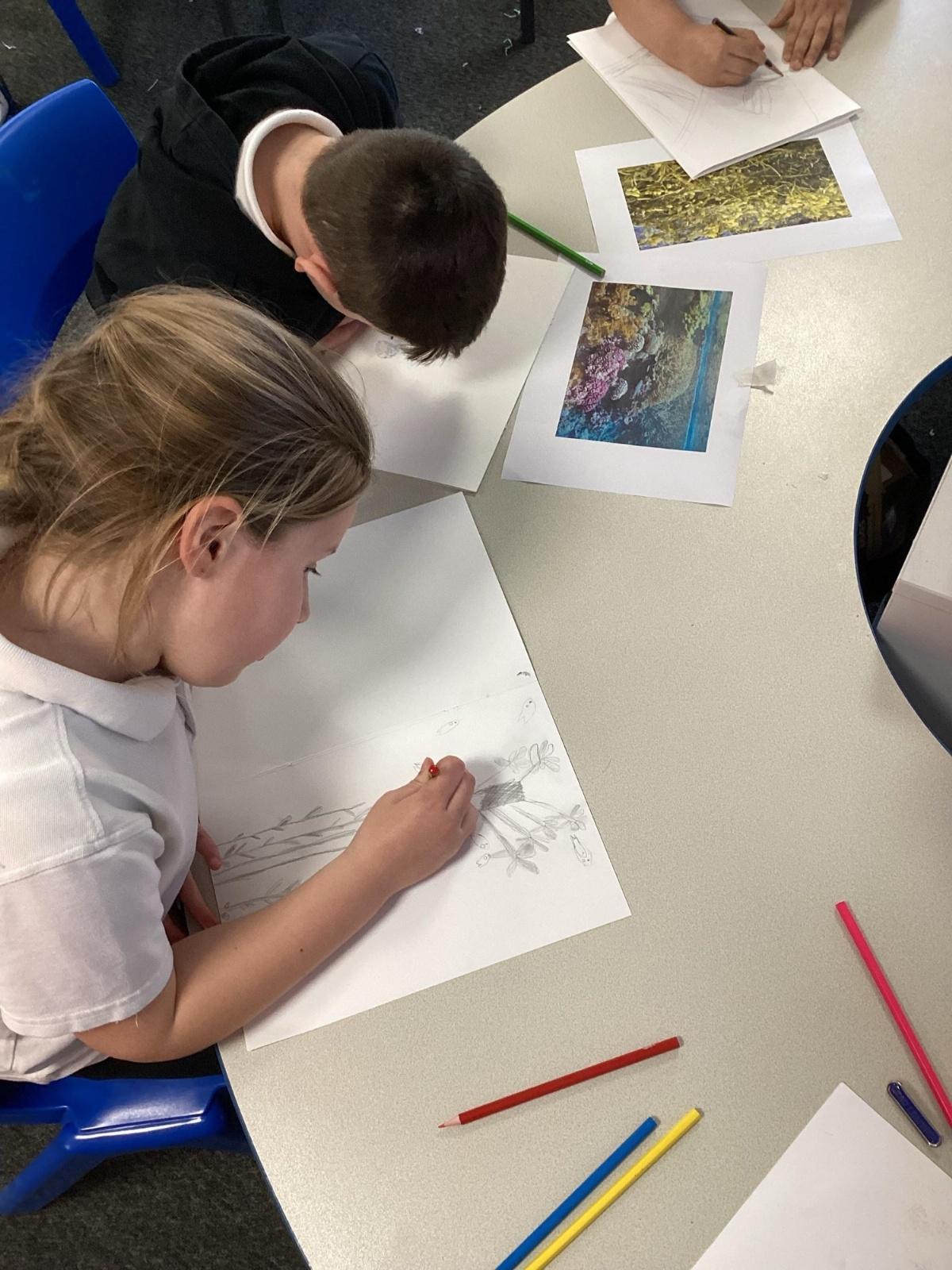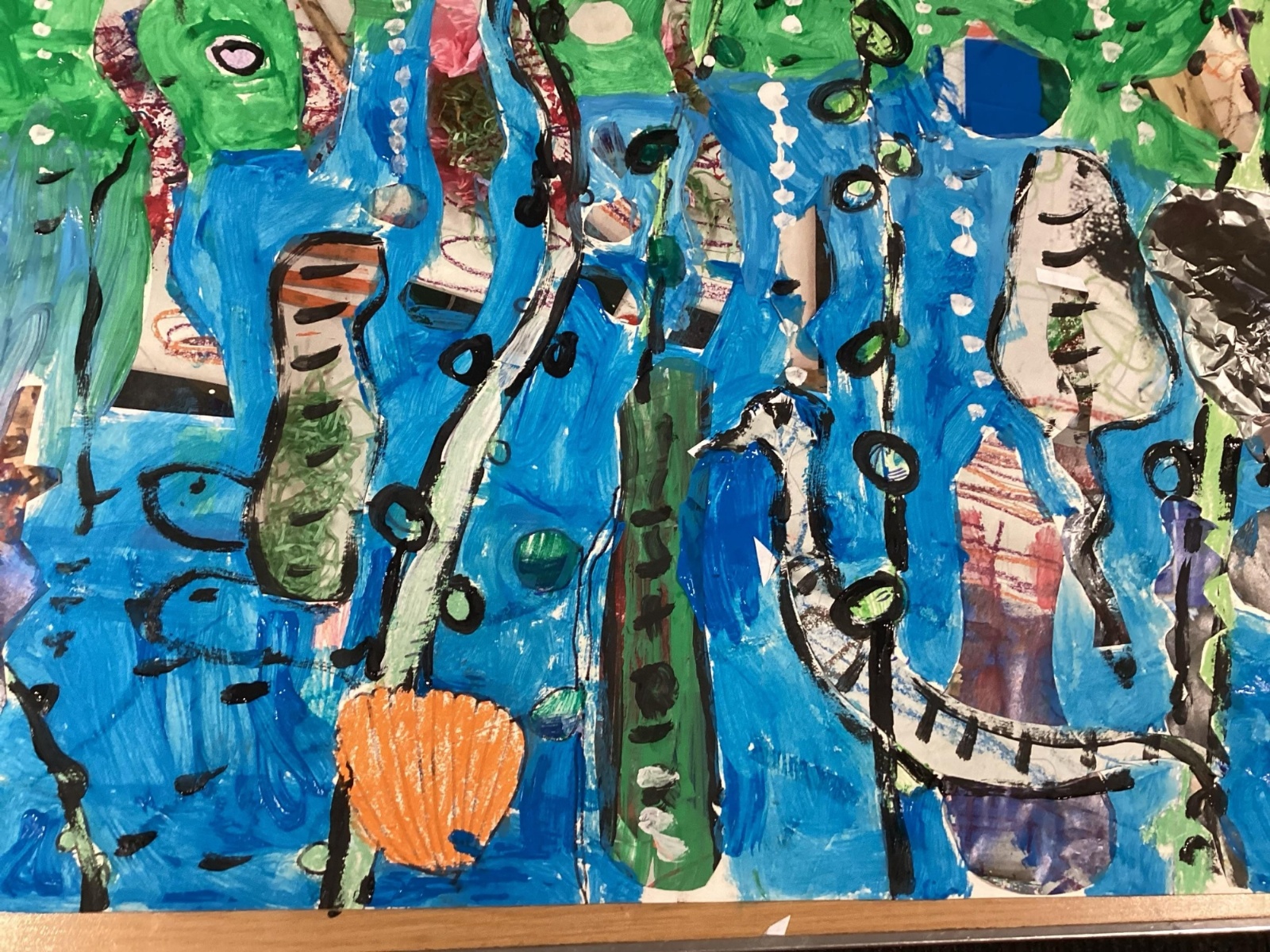 During the session, the children explored different sea plants and underwater life, using a variety of materials and techniques to create a vibrant and imaginative piece of artwork together. They showed great creativity and enthusiasm as they experimented with colour, texture and shape to represent the underwater world.