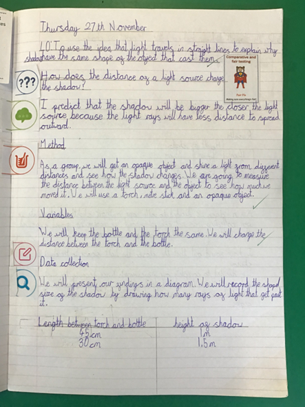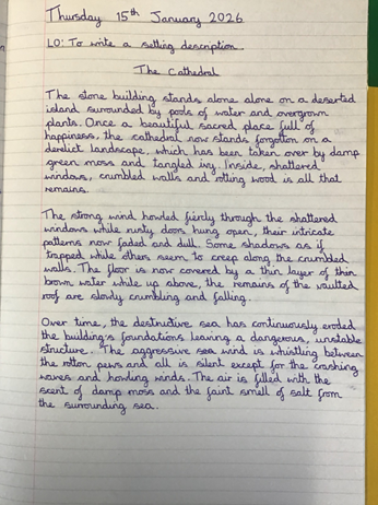 From there, we have devised clear expectations through our assessments and through the document 'Introduction of writing elements by year group'. This document ensures that all teachers are aware of the different elements of writing that children should have mastered by the end of the year group.